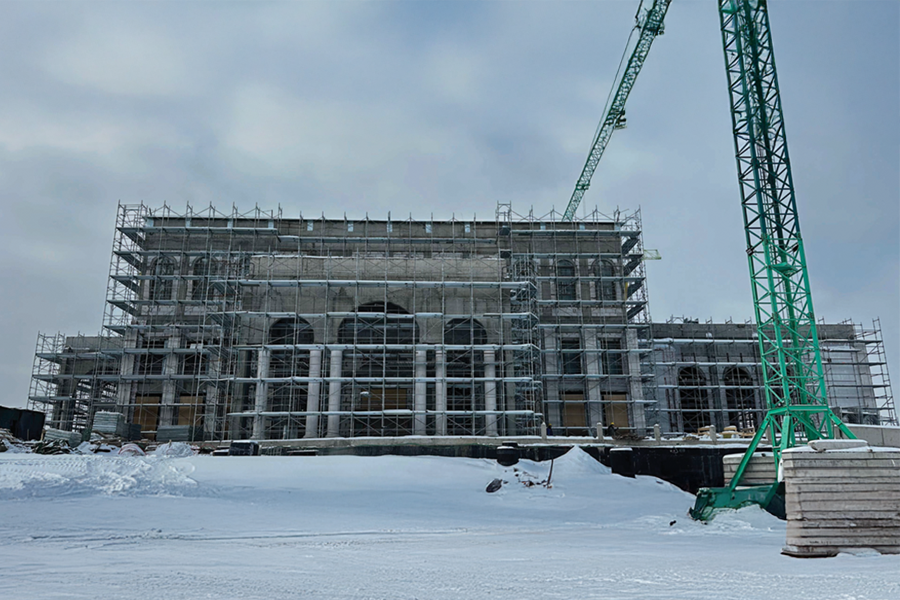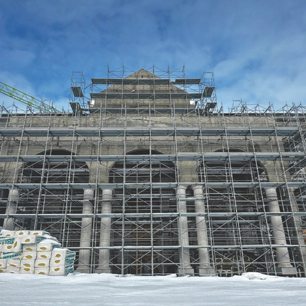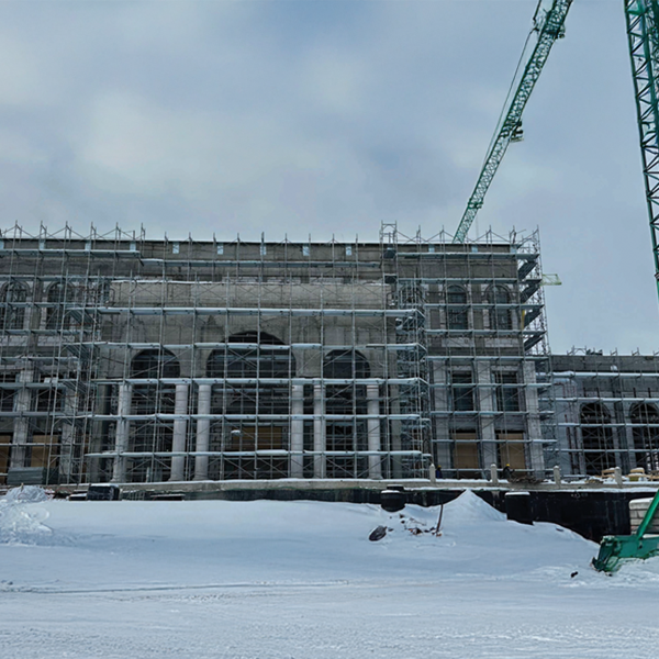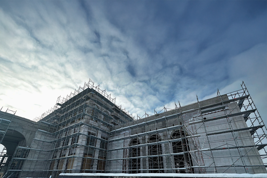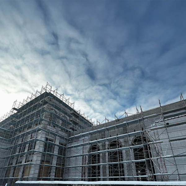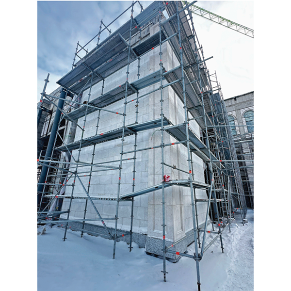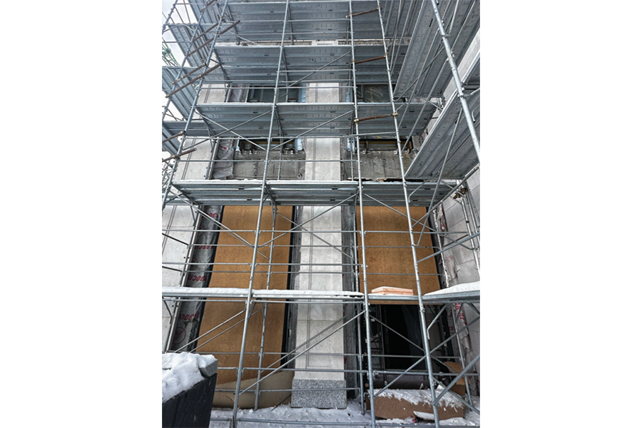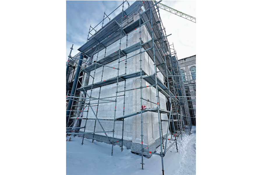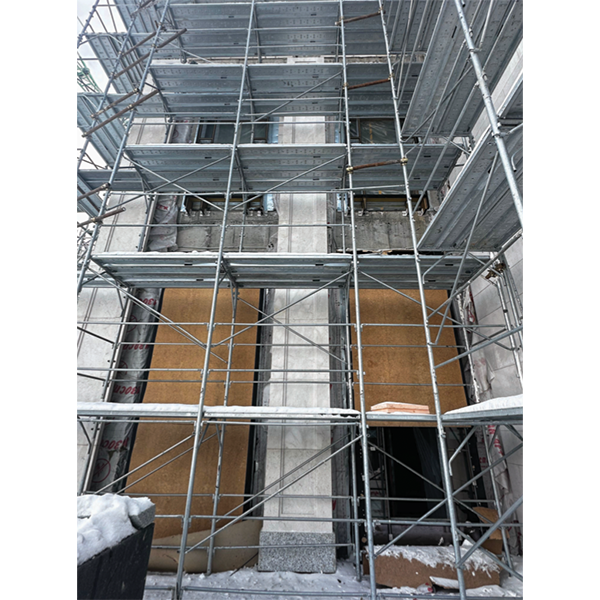 • Installation of facade stone cladding.